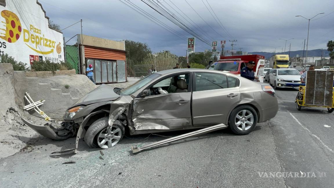 Confunde pedal y envía a familia a hospital de Saltillo; auto salió proyectado tras choque