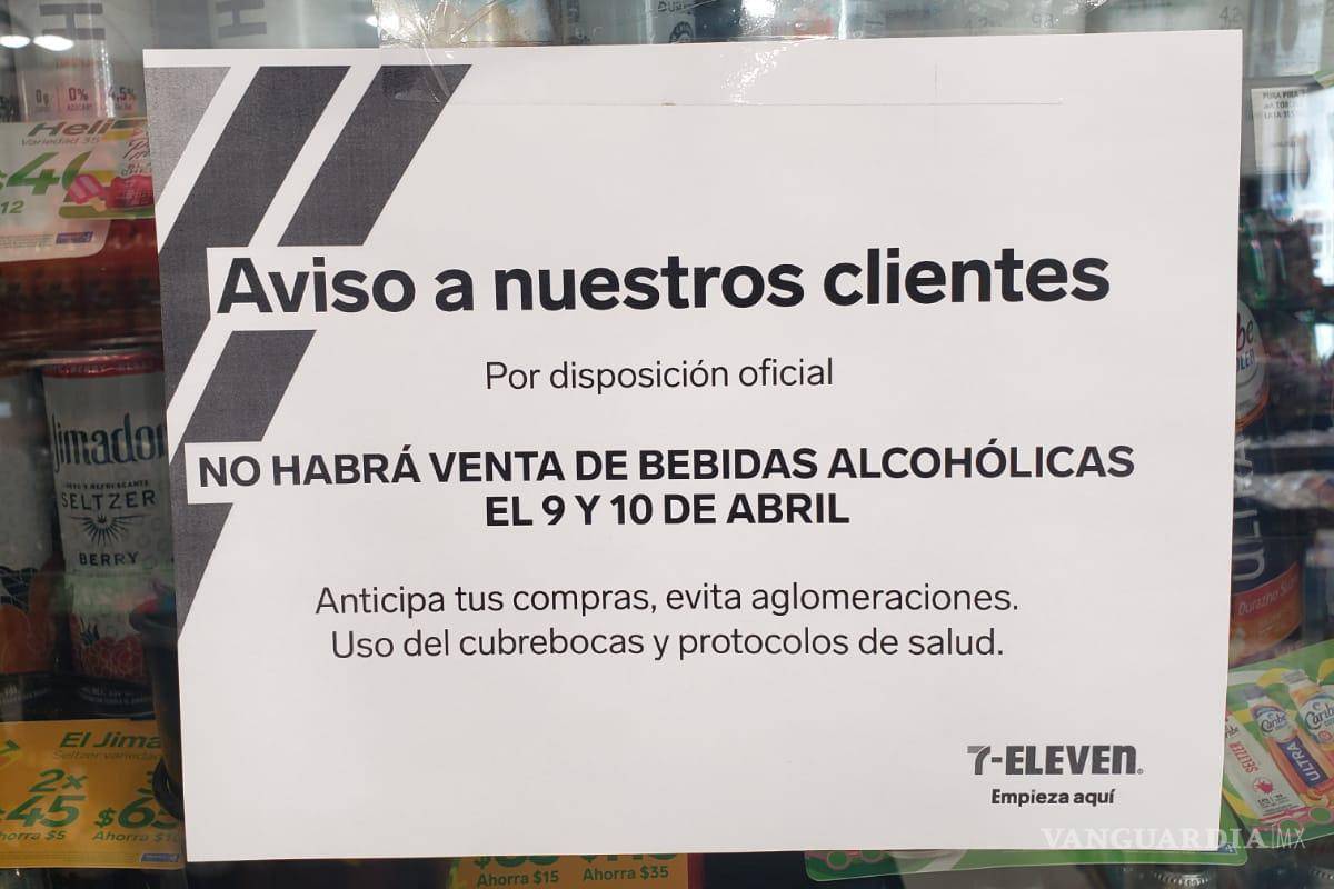 En diversas tiendas Seven Eleven y Oxxos de Saltillo, ha sido colocado el anuncio sobre la suspensión de venta de alcohol durante el fin de semana o por lo menos el domingo.