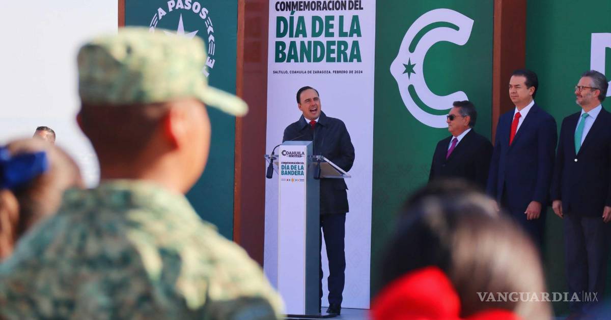 En México se celebra a la Bandera nacional todos los 24 de febrero, y este 2024 en Saltillo el festejo se realizó por parte del Gobierno del Estado en la explanada del parque Las Maravillas, en donde se izó una macrobandera cerca de las 9:00 horas.