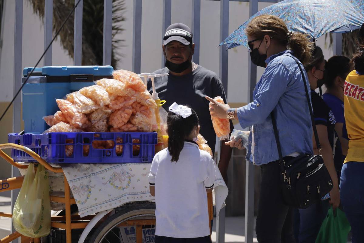 “Por todos lados te vendían el refresquito, las papitas. Ahorita la cooperativa (el estanquillo de la escuela) abre solo un ratito y les venden vasos de fruta y comida preparada como burritos, gorditas y taquitos”, explicó otra madre, en el exterior de la escuela Anexa.