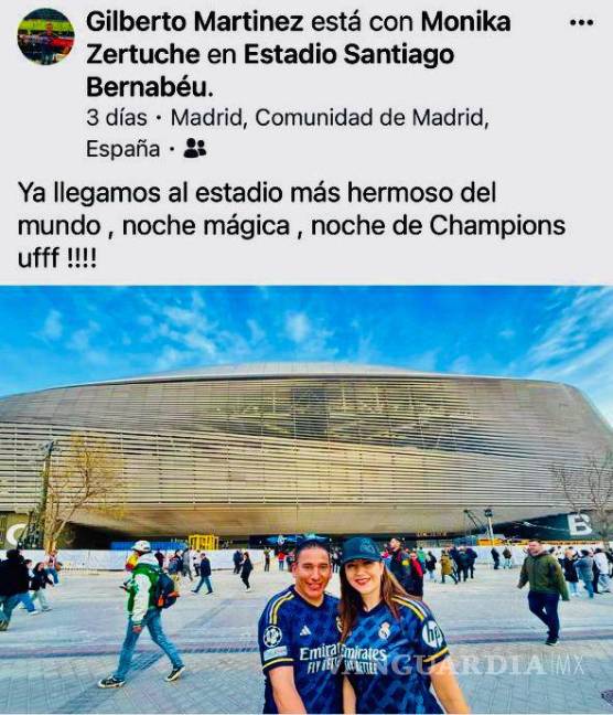 Las fotografías fueron publicadas en el perfil de Facebook del esposo de Zertuche, Gilberto Martínez, y en ellas aparece la pareja, primero, en el aeropuerto internacional de la Ciudad de México; en otras dos dentro y fuera del estadio Santiago Bernabéu, en Madrid, en el cual asistieron a un partido de la Champions League y, finalmente, en los Alpes suizos.