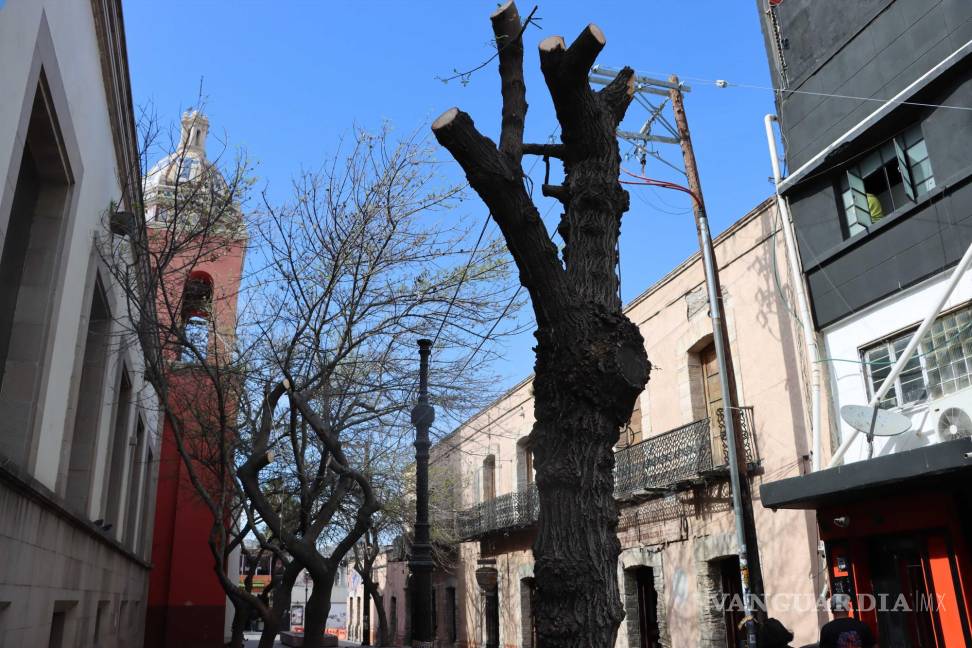 Saltillo, Coah.- El empresario local Sergio Castillo criticó este jueves los trabajos de poda extrema que personal del municipio realizó en fresnos de los callejones Ocampo y Padre Flores, como parte del proyecto de remodelación y peatonalización de la calle Benito Juárez, en el centrode la ciudad.