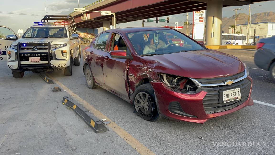 Cruza por las boyas, le quita paso a vehículo y provoca aparatoso accidente en Saltillo