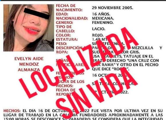 El cuerpo de Evelyn fue encontrado debido a que vecinos de un domicilio en la calle 16 de Septiembre de la colonia Rancho Las Varas de la capital coahuilense reportaron actividad sospechosa en uno de los complejos habitacionales.