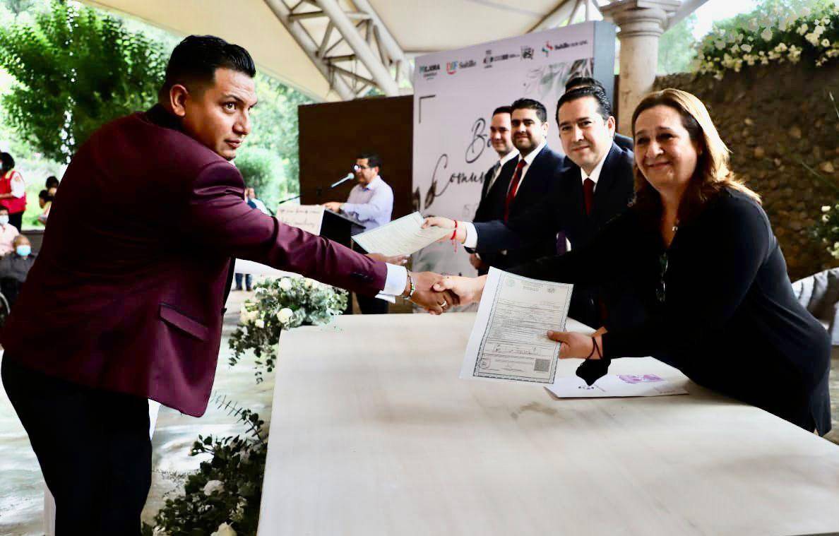 “Esta alianza con el Gobierno del Estado permite la formalización de ese compromiso de unión, es un honor participar y ser testigos de este gran acto; estamos trabajando muy de la mano con la sociedad de Saltillo para darle más programas como éste, que redunden en beneficios para la población”, destacó.