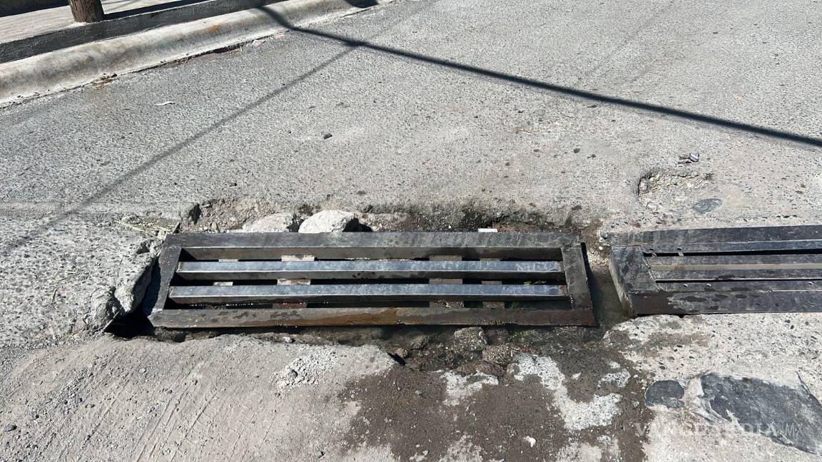PARRAS.- Vecinos han manifestado su preocupación porque en distintos puntos de la ciudad se observa el mal estado de las rejillas colocadas en pasos de agua, las cuales representan un riesgo para peatones y automovilistas.