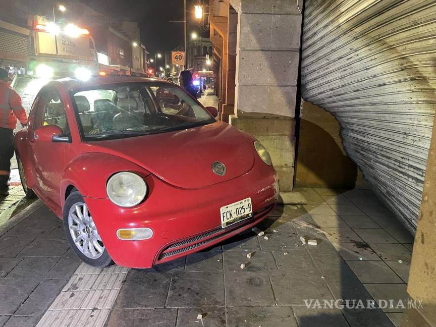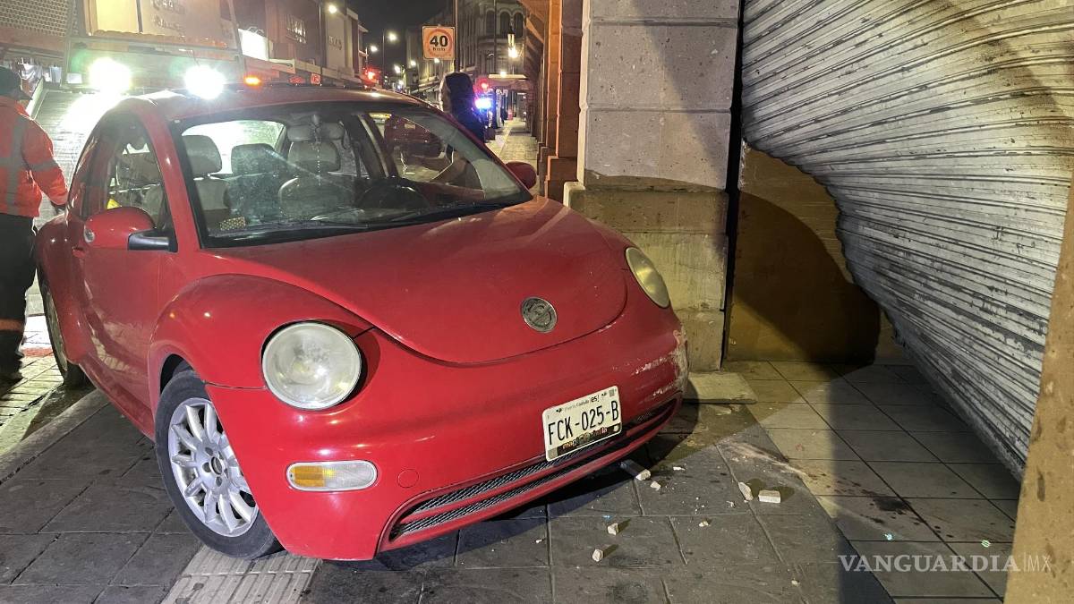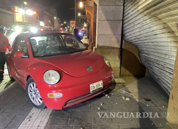 Debido al exceso de velocidad con el que manejaba una joven por el centro de Saltillo, perdió el control de su vehículo y chocó contra uno de los locales del Mercado Juárez, destrozando completamente la entrada y su automóvil.