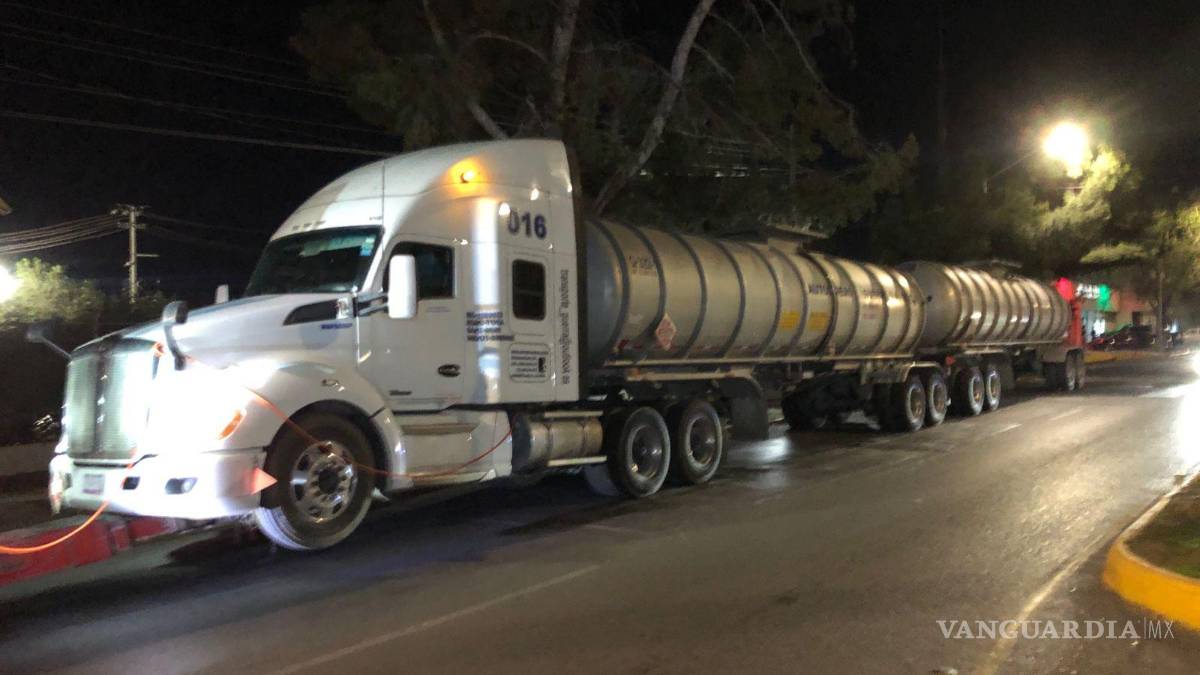 Elementos de la Policía Civil de Coahuila decomisaron un tráiler que transportaba dos pipas con 67 mil litros de hidrocarburo, mientras circulaba sobre el libramiento Óscar Flores Tapia.