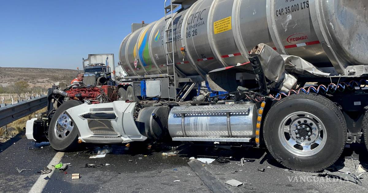 Contra un tráiler, que estaba descompuesto y estacionado, se estrelló el operador de un transporte con doble semirremolque que transportaba diésel, el accidente ocurrió cerca de las 10:40 de la mañana en la carretera Matamoros-Saltillo.