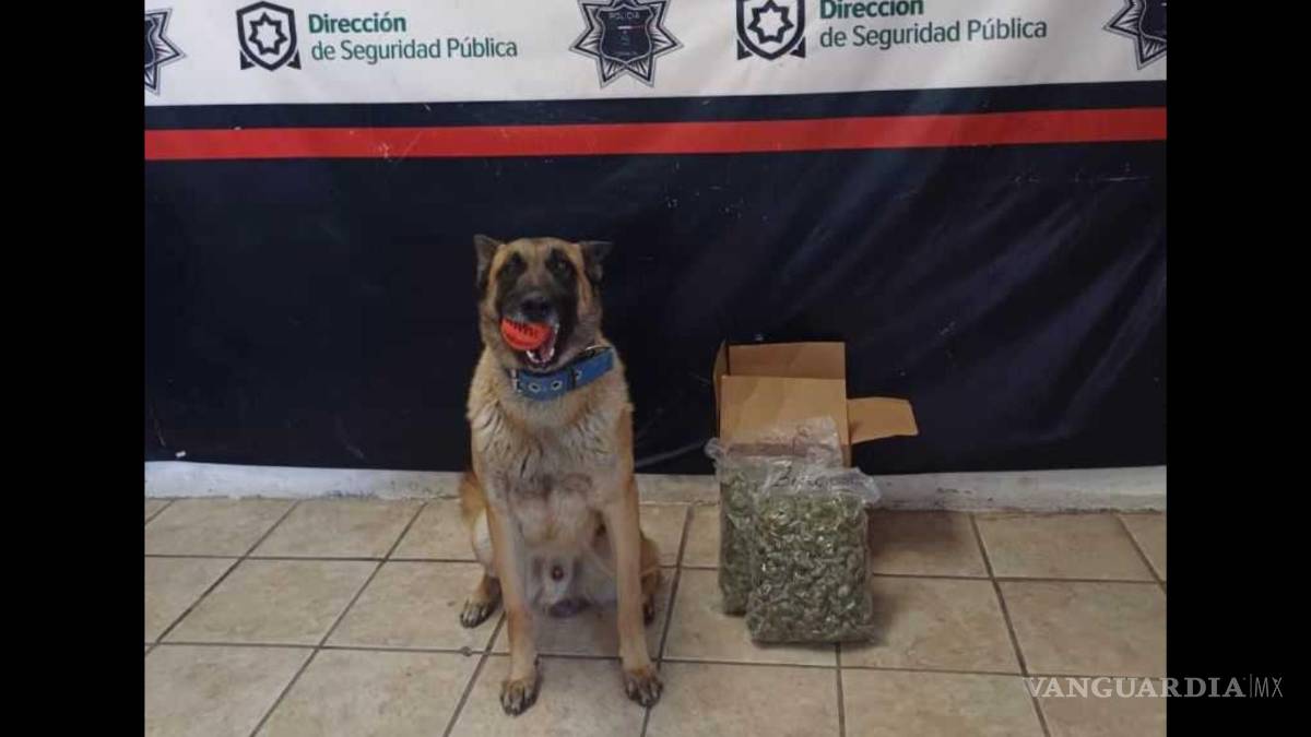 TORREÓN, COAH.- El Escuadrón Canino (K9) de la Dirección de Seguridad Pública Municipal aseguró un paquete con estupefacientes en una empresa de envíos de la colonia San Felipe de Torreón.