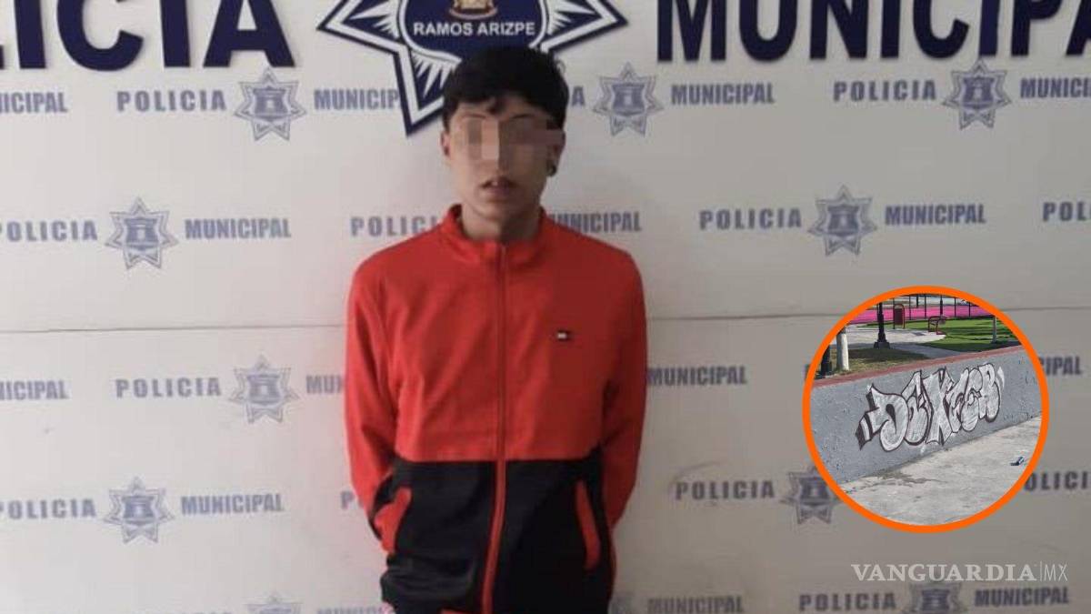 Oficiales de la Policía Municipal de Ramos Arizpe detuvieron a un joven de 20 años por grafitear la plaza de la colonia Del Valle.
