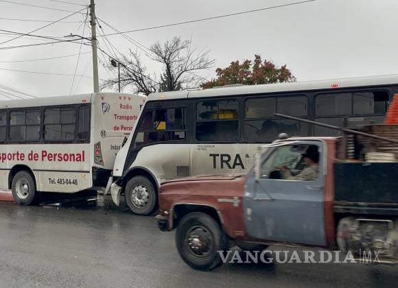 Debido a que no mantuvo la distancia prudente mientras circulaba por el bulevar Otilio González, el conductor de un transporte de personal terminó chocando por detrás a otro vehículo de transporte de personal cuando ambos se dirigían hacia el periférico Luis Echeverría Álvarez de Saltillo.