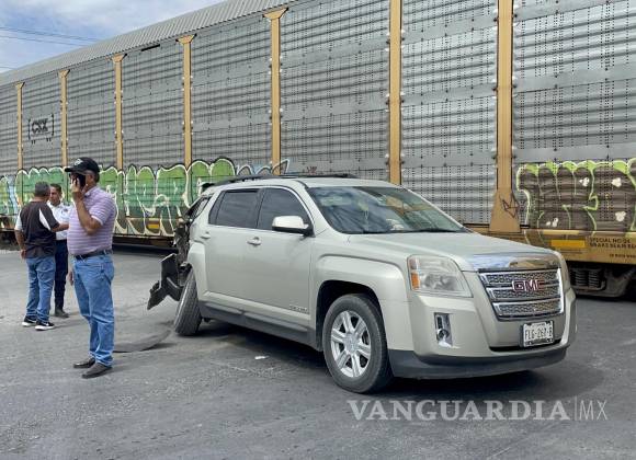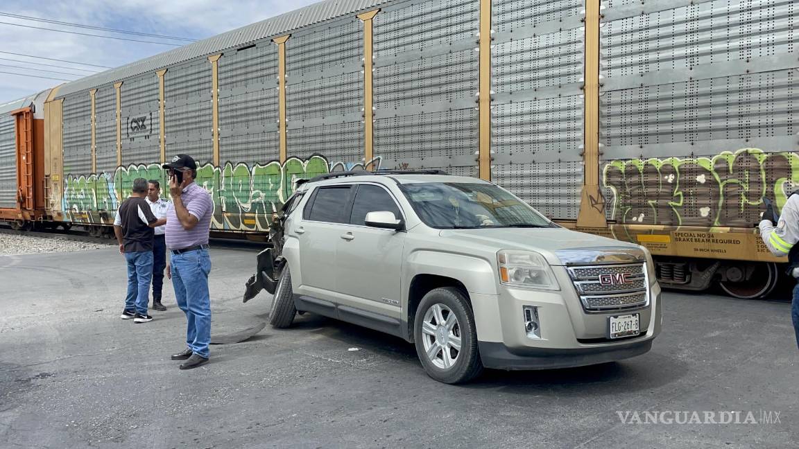 Doble accidente en Saltillo: lo embisten al intentar ganarle al tren; empleado acude al lugar y se vuelca