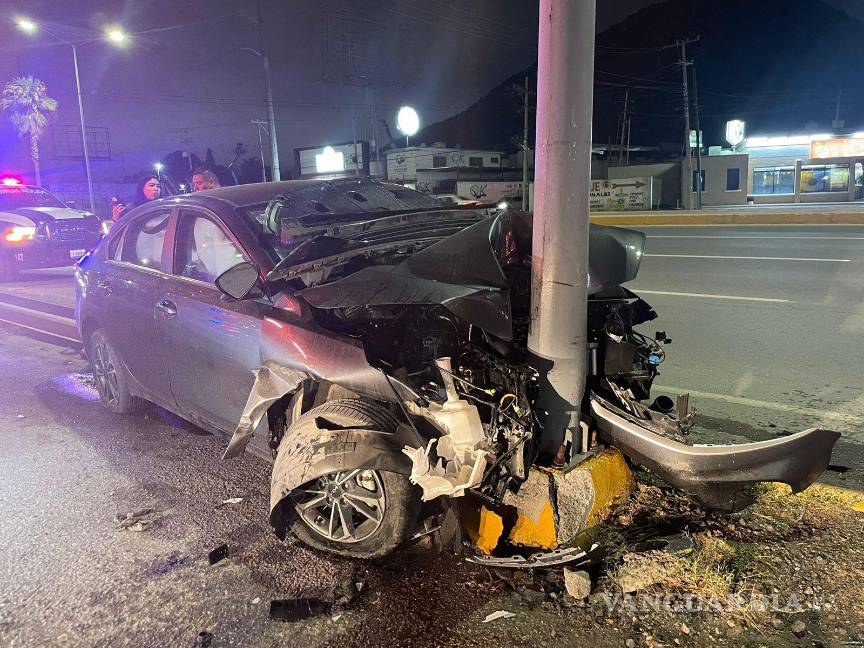 Dormita al volante y se ensarta contra poste en Ramos Arizpe