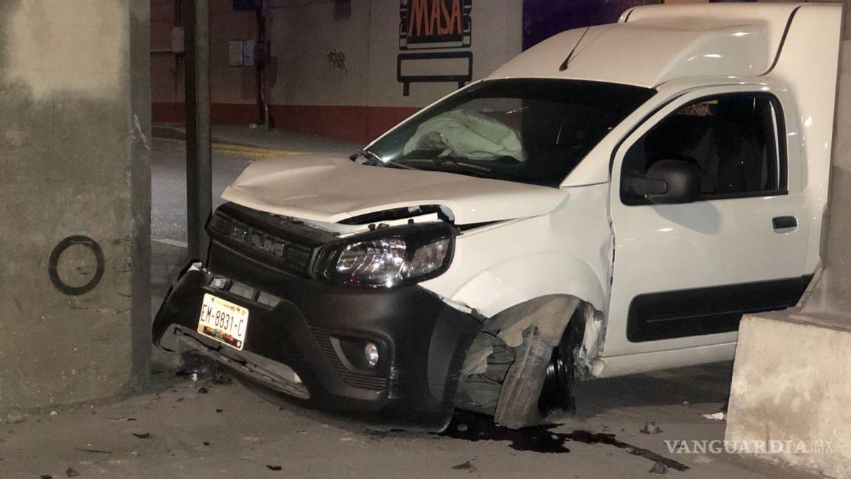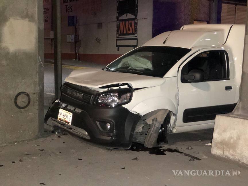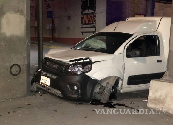 Dormita y se estrella contra base del distribuidor vial en Saltillo
