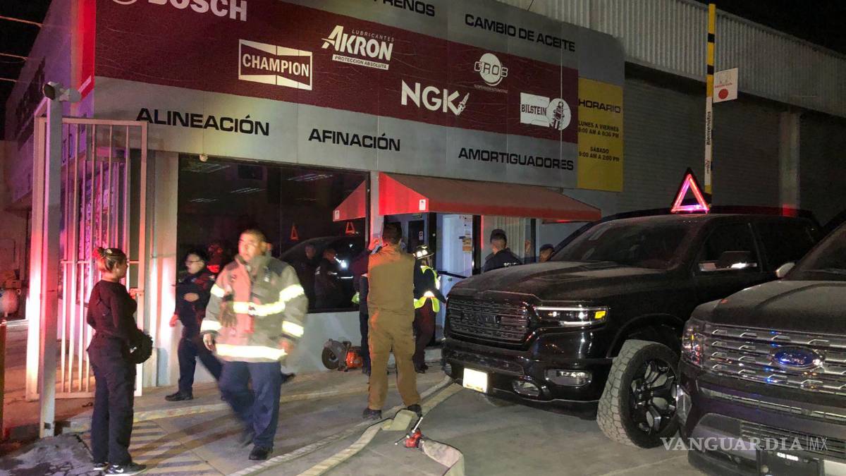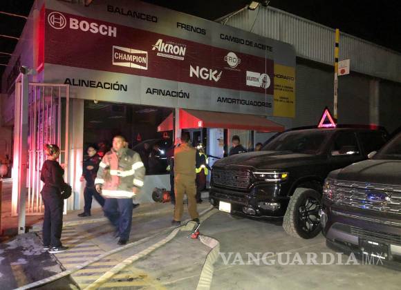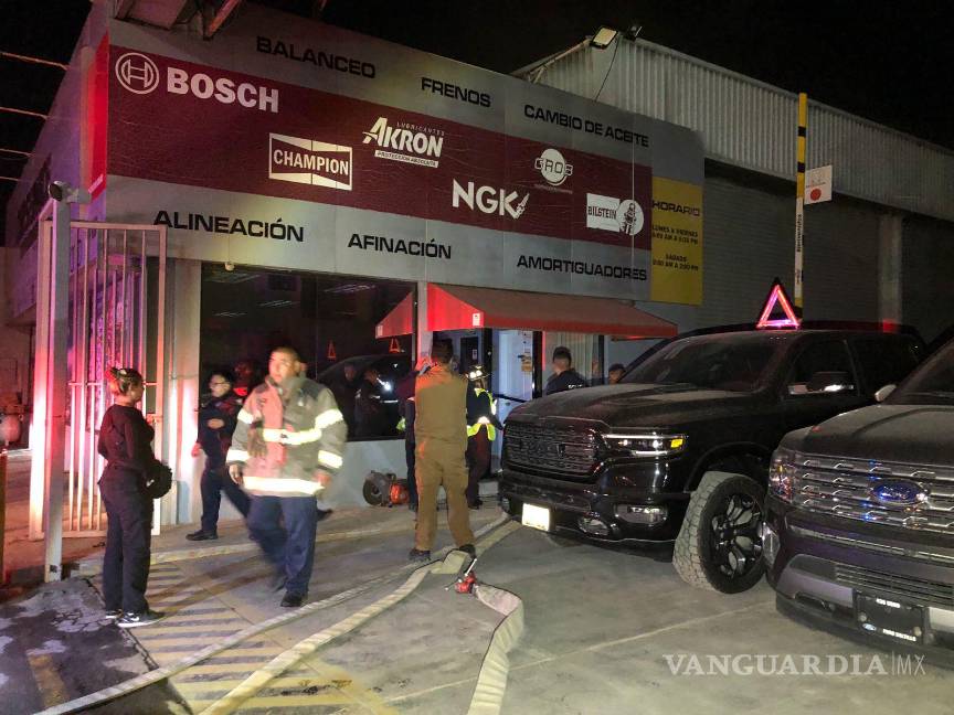 Un fuerte incendio en un centro de servicio automotriz del norte de Saltillo provocó que el lugar terminara envuelto en llamas y con dos autos incendiados, tras un presunto cortocircuito.