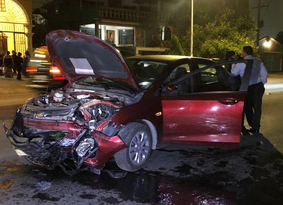 Ebrio conductor circula en contra al salir de fiesta al sur de Saltillo y termina en fuerte colisión contra taxi