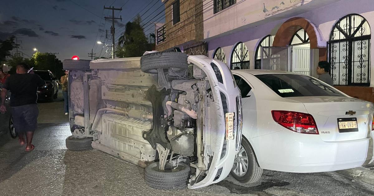 Estos vehículos actuaron como rampas, provocando que el Aveo volcara y dañara al vehículo de la aplicación, así como a otro más.