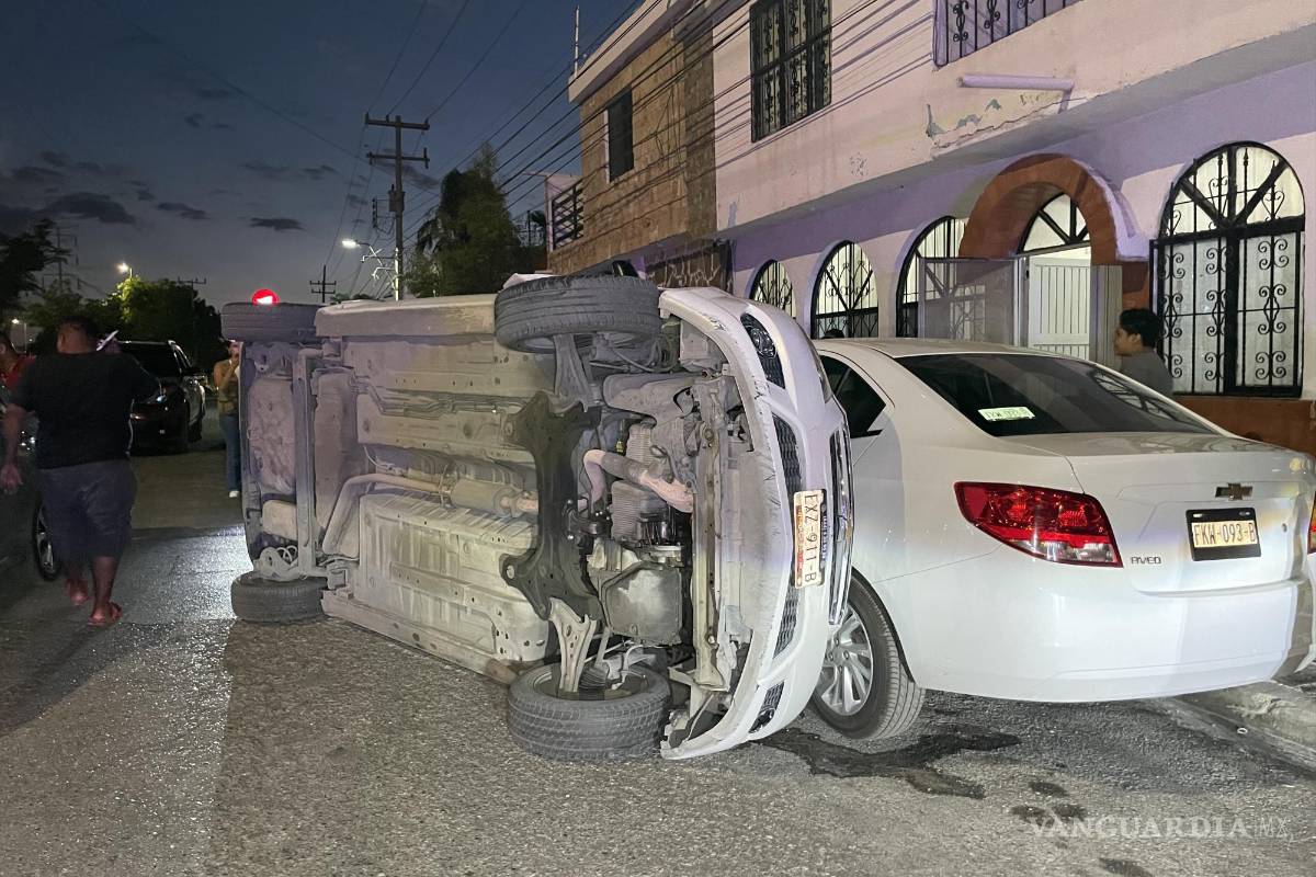 Ebrio vuelca y termina dañando cuatro autos, al oriente de Saltillo (video)
