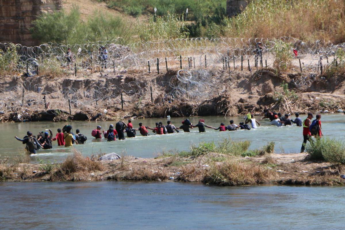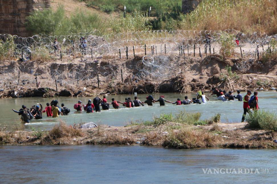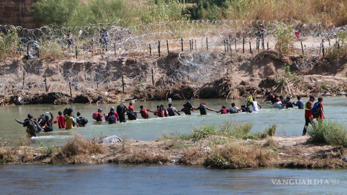 En ‘cadena humana’, miles de migrantes cruzan a Estados Unidos desde Piedras Negras este domingo (video)