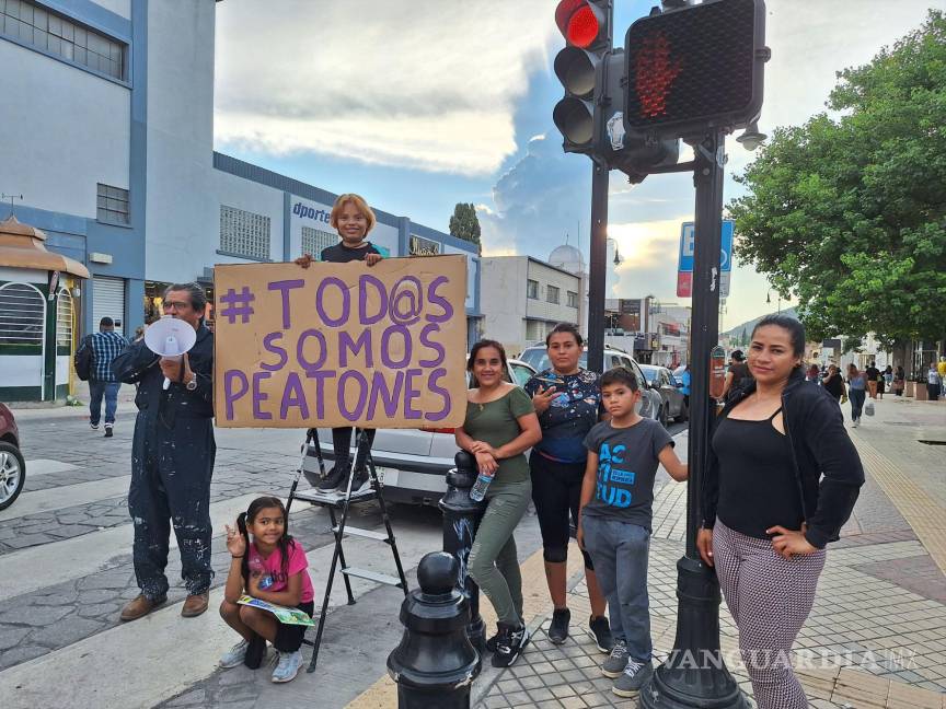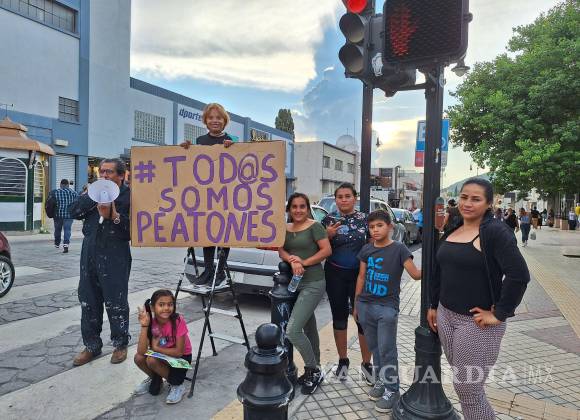 En el Día del Peatón, activistas de ‘Transporte Digno Saltillo’ intervienen calle de la Zona Centro