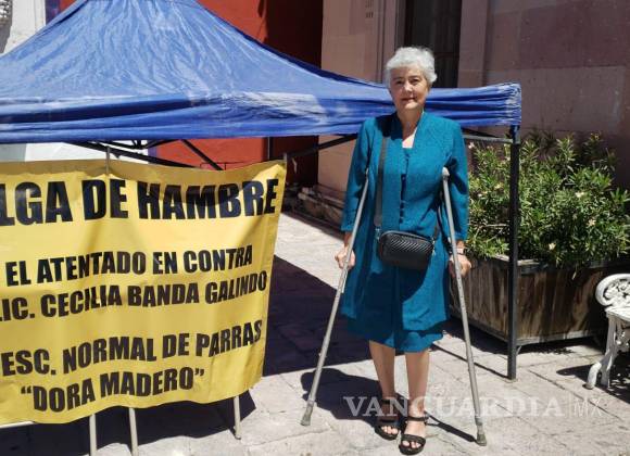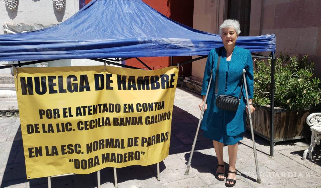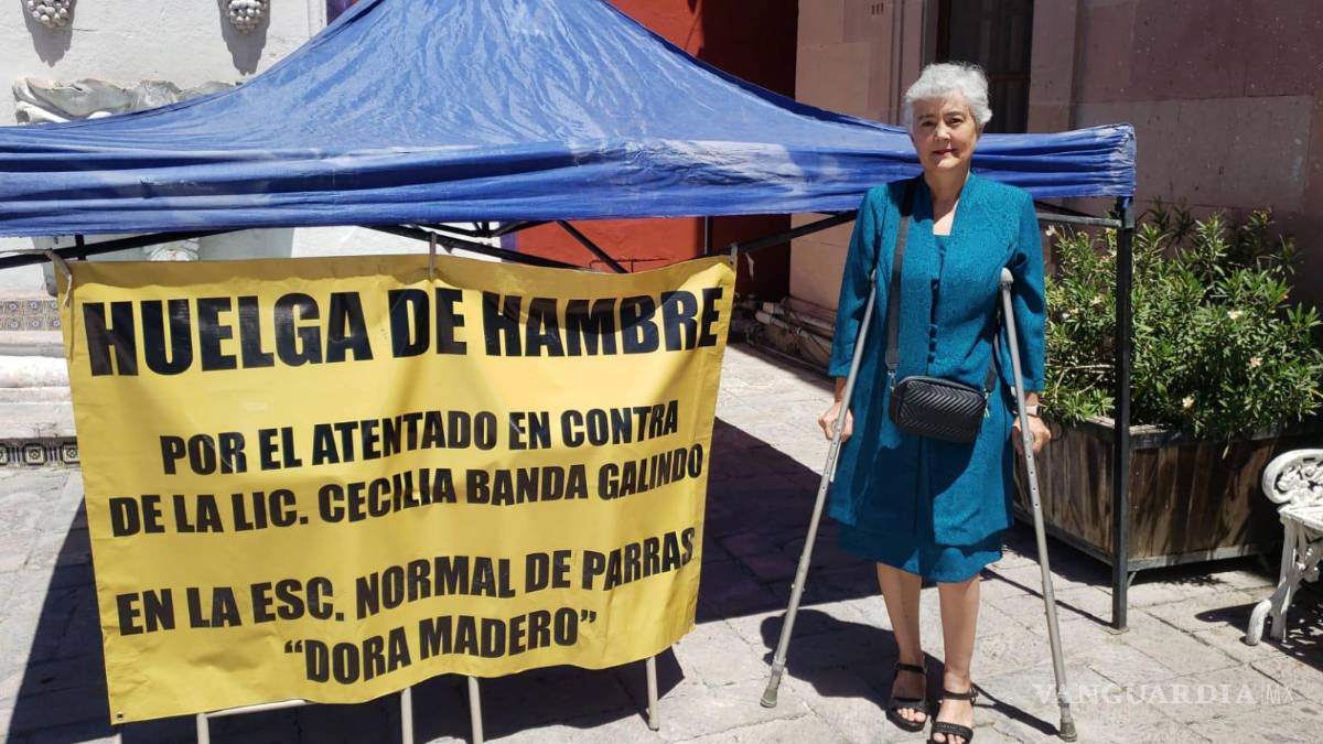 PARRAS, COAH. – La maestra Cecilia Banda, docente de inglés con ocho años de antigüedad en la Escuela Normal Oficial Dora Madero, se encuentra en huelga de hambre desde este miércoles, a un costado de la presidencia municipal, en protesta por el presunto acoso laboral que sufre por parte del director de la institución, Luis Alberto.