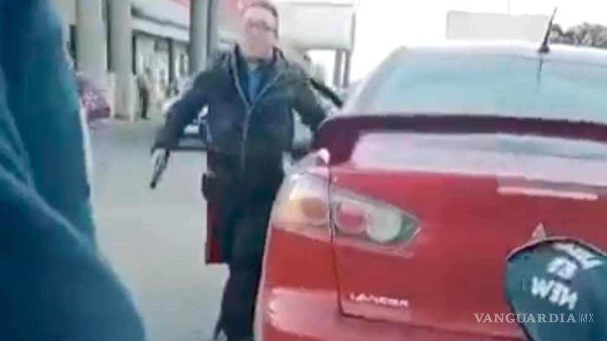 En la grabación podemos observar cómo la pareja denunciante viene siguiendo el auto hasta que este decide detenerse en el estacionamiento de Soriana Lourdes para luego el conductor descender de su vehículo con un arma de fuego en la mano e intercambiar agresiones verbales con los motociclistas.