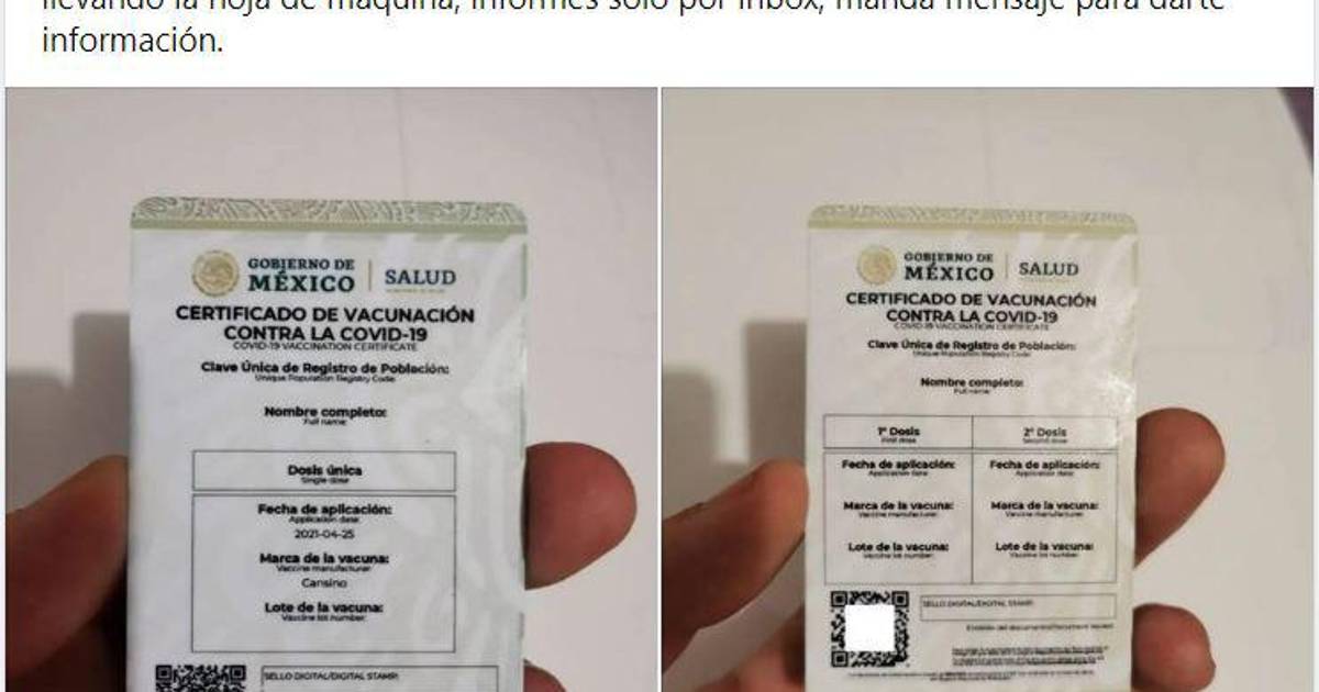 Las tarjetas indican el nombre, CURP, fecha de aplicación de la primera y segunda dosis, la marca de la vacuna y su lote.