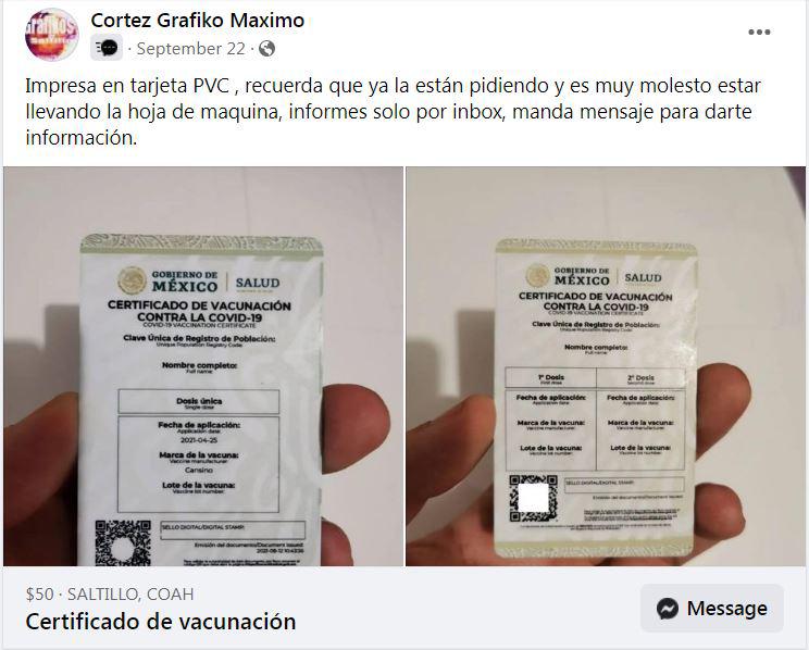 De acuerdo con los encargados de algunos establecimientos en Saltillo y Monclova, es un servicio más que ahora se ofrece en las imprentas y papelerías; en redes sociales se comercializa este tipo de tarjeta.