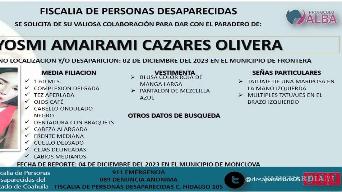 TE PUEDE INTERESAR: Buscan a Melany, de 14 años; desapareció el 6 de dicembre en Saltillo