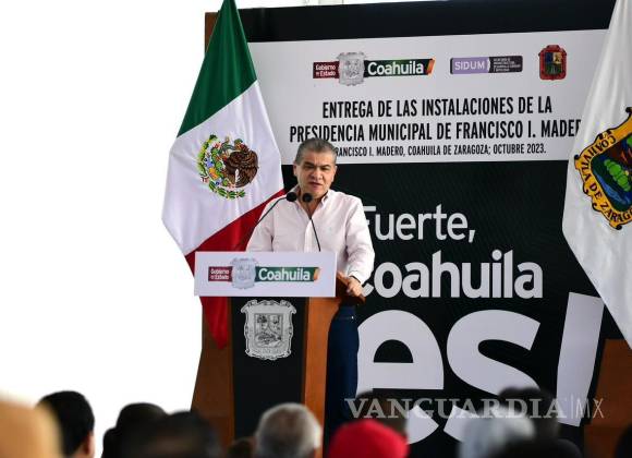 FRANCISCO I. MADERO, COAH.- En este municipio, el gobernador Miguel Riquelme entregó el nuevo edificio de la Presidencia Municipal de Madero, e inauguró la pavimentación de la Carretera a Finisterre, en el entronque Hidalgo-Lequeitio, además de un pozo de agua; obras en las que se invirtieron más de 86 millones de pesos.