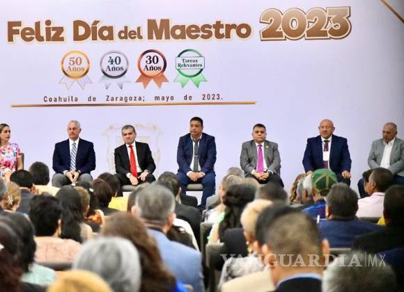 En el centro de convenciones de esta ciudad, acompañaron al ejecutivo estatal el alcalde Román Alberto Cepeda; Eduardo Olmos Castro, presidente de la Junta de Gobierno del Congreso del Estado; la Senadora Verónica Martínez, el secretario de Educación, Francisco Saracho; el dirigente de la Sección 35 del SNTE, Arturo Díaz González y prácticamente todos los sectores de la educación, reconociendo a los maestros en su día.