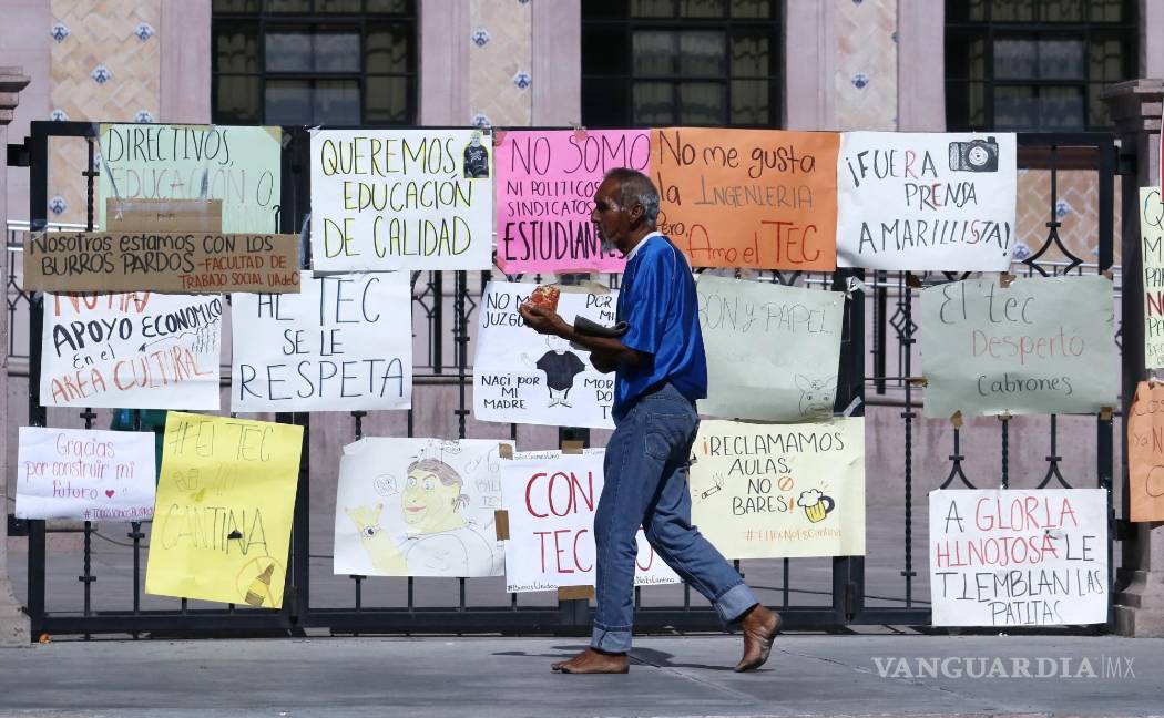 El estudiantado del Instituto Tecnológico de Saltillo expresó en su séptimo día de paro y ocupación del bulevar V. Carranza, que atendieron la conferencia de prensa de Riquelme “a tragos amargos”.