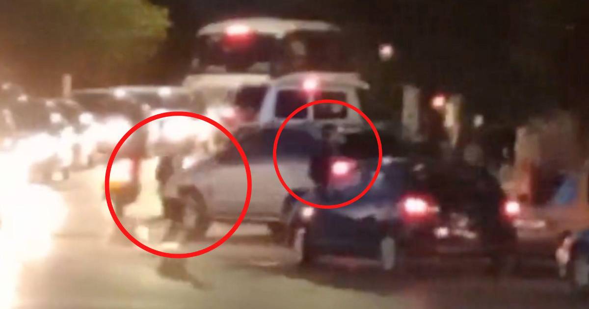 En la grabación que dura 45 segundos, se aprecia una fila de autos de los que descienden alumnos, otros vehículos circulando y otros más esperando la luz verde del semáforo.