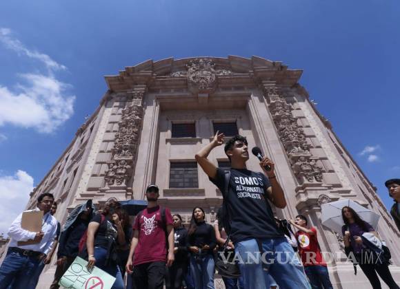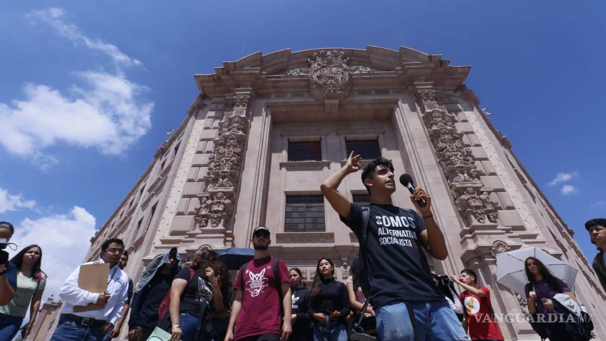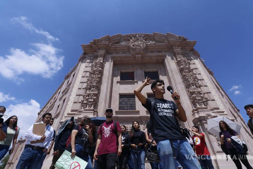 Cientos de estudiantes permanecen al exterior de las instalaciones del Tecnológico de Saltillo. Al interior invitaron el desalojo de personal, pues exigen la renuncia de la directora María Gloria Hinojosa.