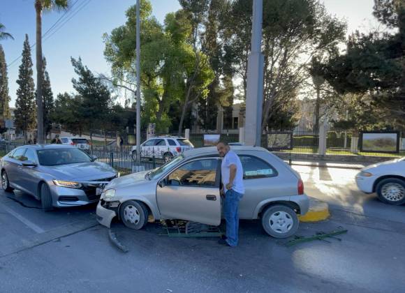 Evita accidente y ocasiona otro; choca contra jardinera y auto en V Carranza