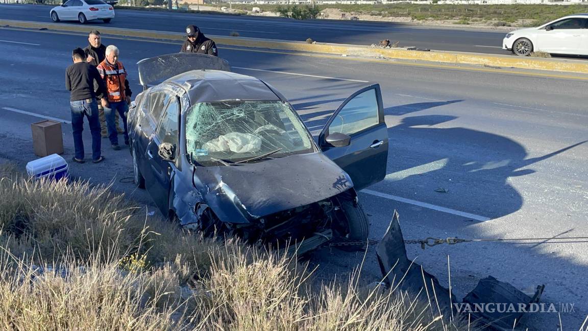 Contra el talud es donde terminó impactado un automovilista que circulaba a exceso de velocidad por el libramiento Óscar Flores Tapia la mañana de este jueves de Arteaga a Ramos Arizpe.