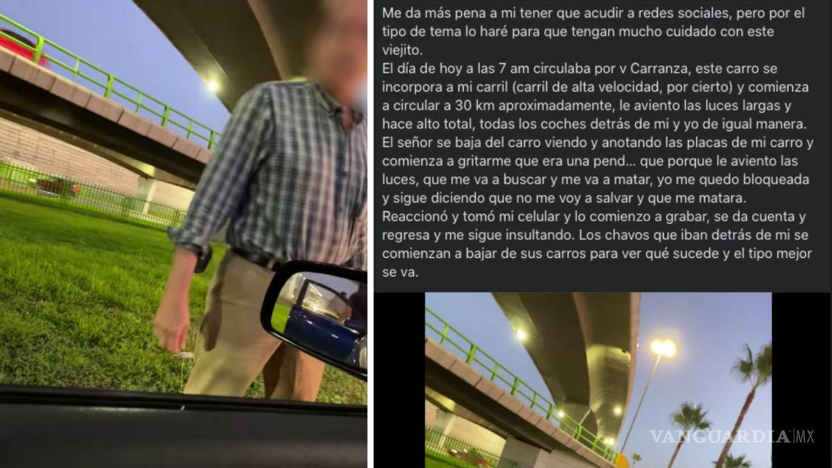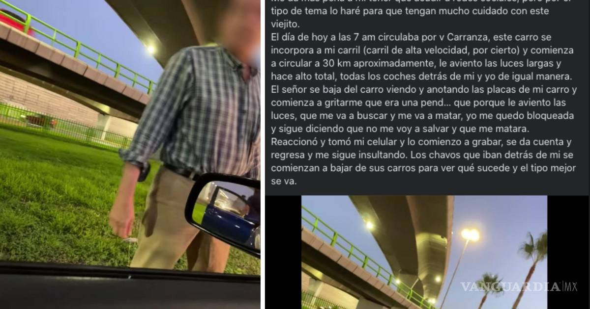 Con el objetivo de que su experiencia sirva como alerta para los conductores de Saltillo, una mujer narró cómo fue agredida verbalmente y amenazada por un hombre en la vialidad, luego de que ella le ‘aventó’ las luces largas del automóvil.
