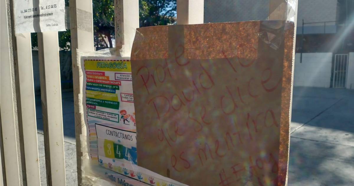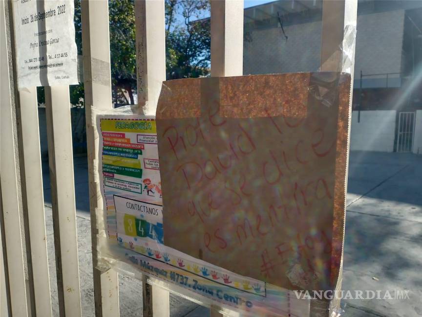 En ese sentido, pegaron carteles con mensajes de apoyo al profesor, cuya situación laboral continúa siendo analizada, de acuerdo con el departamento Jurídico de la Secretaría de Educación de Coahuila.