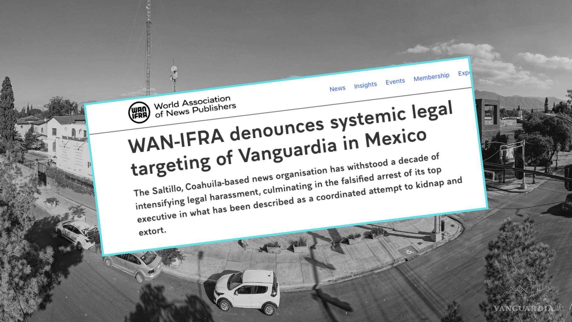 La Asociación Mundial de Editores de Noticias (WAN-IFRA) manifestó su preocupación por lo que calificó como una persecución judicial sistemática contra VANGUARDIA y su director general, Armando Castilla, al considerar que se trata de acciones legales fabricadas que ponen en riesgo la libertad de prensa y el Estado de derecho.