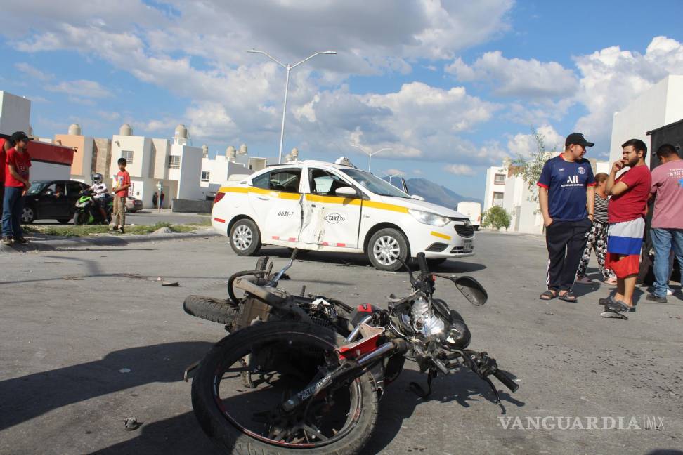 Un trágico accidente se registró en las calles de la colonia Misión Cerritos, en Saltillo, donde un joven conductor de una motocicleta perdió la vida y dos de sus amigos resultaron gravemente heridos al chocar contra un taxi.