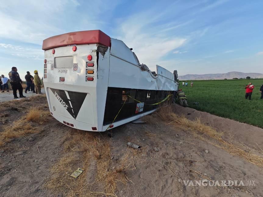 Fallece menor y seis personas resultan lesionadas tras volcadura de autobús Torreón–Matamoros