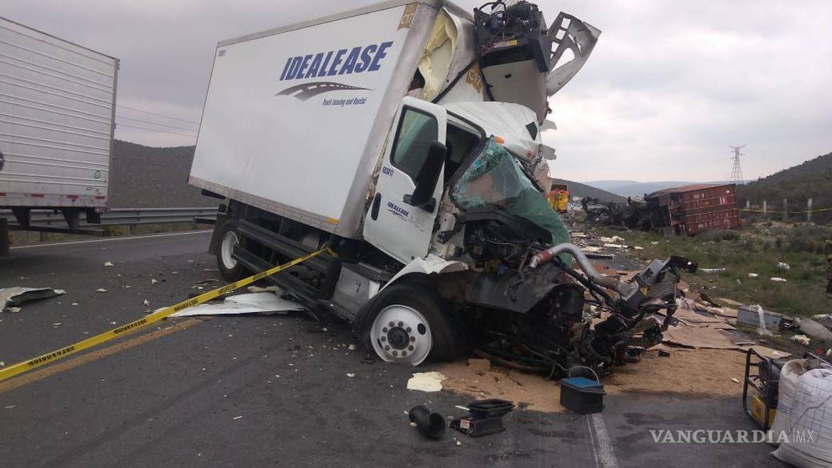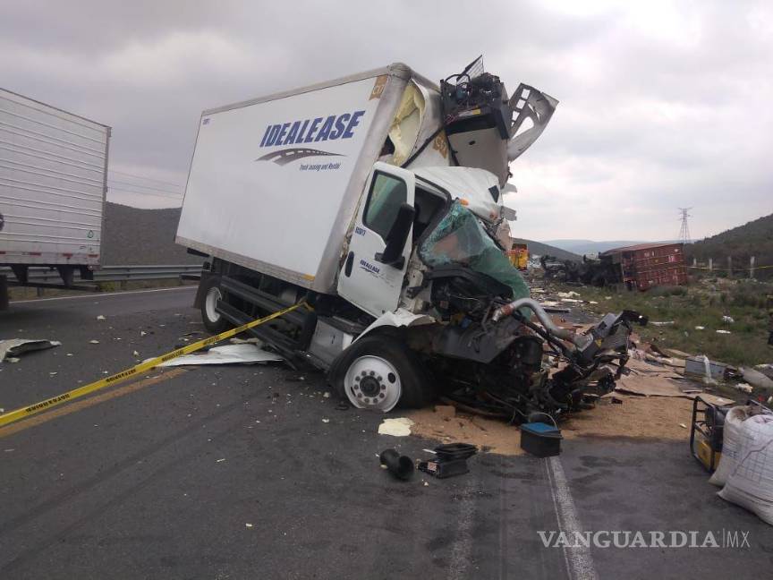 El vehículo que aparentemente invadió el carril contrario, propiedad de la empresa Idealease y viajando en dirección a Saltillo, originó el impacto frontal que resultó en que el otro camión saliera del camino y volcara.