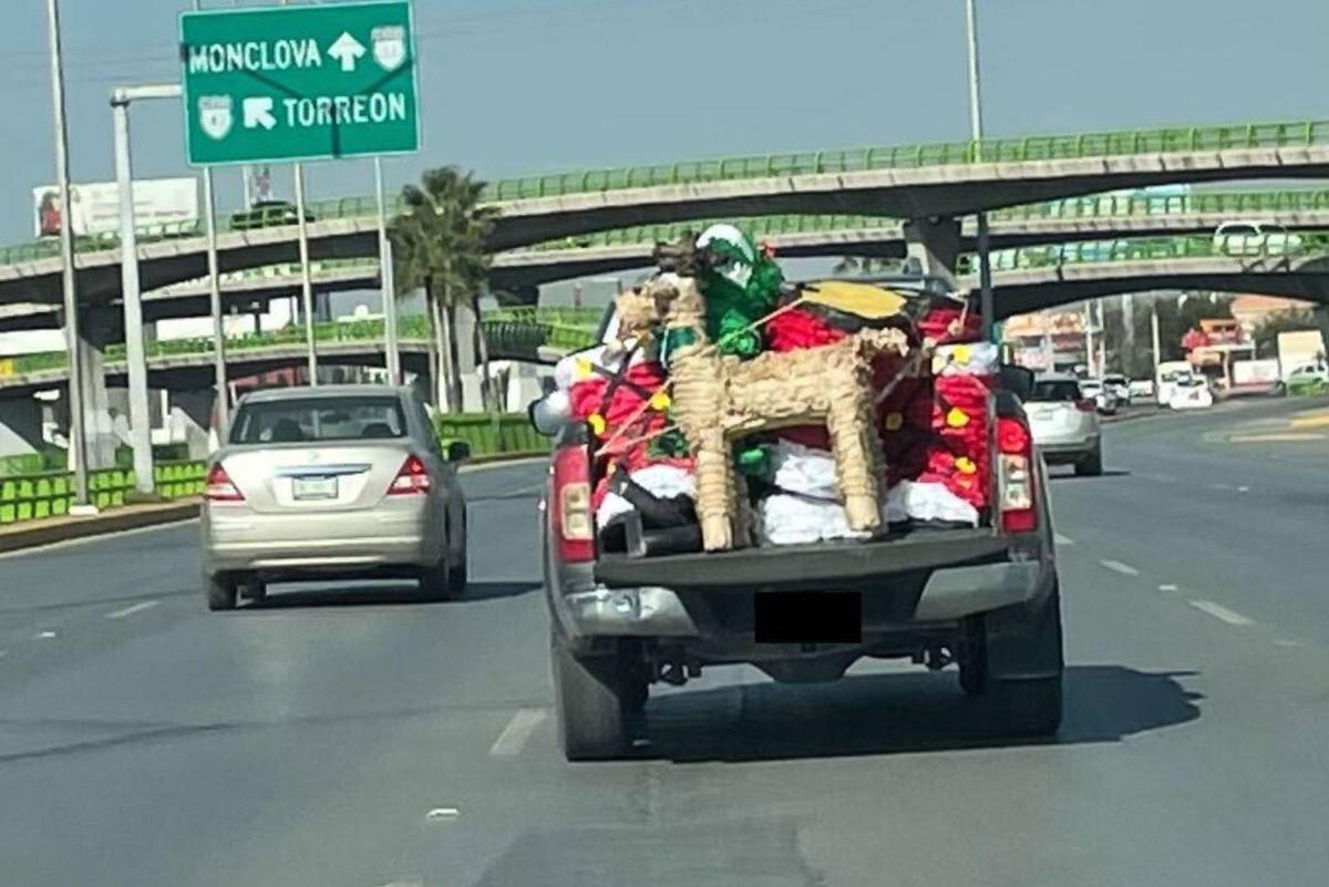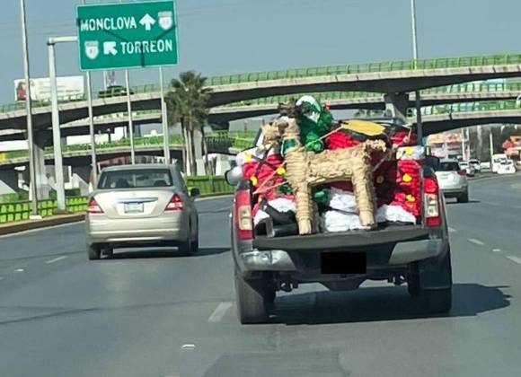Por otro lado, en las calles también han llamado la atención escenas “fuera de temporada”, como una camioneta circulando sobre bulevar Venustiano Carranza con la caja llena de piñatas con figuras de Santa Claus, pinos y renos.