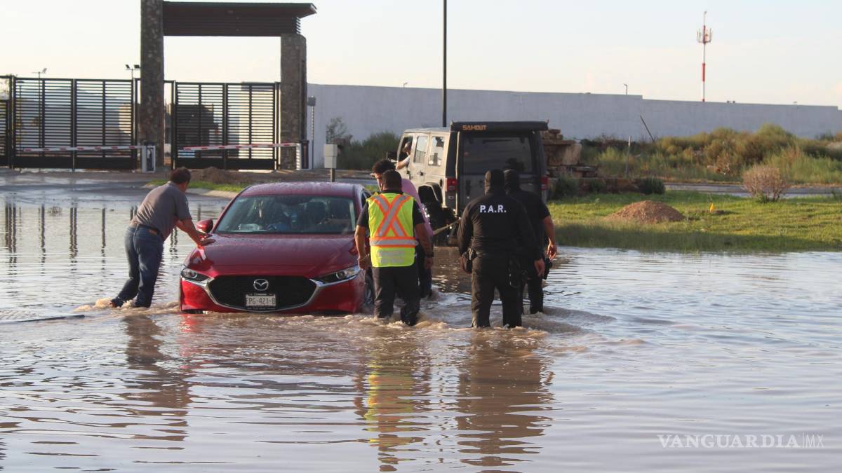 Familia queda varada en encharcamiento en Los Pastores, en Saltillo