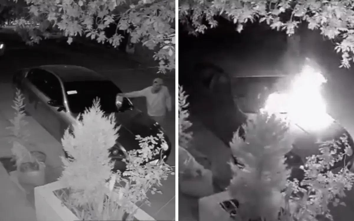 Sin embargo, momentos más tarde su hijo identificó que el incendio había sido provocado por un hombre, quien fue captado esparciendo una sustancia inflamable sobre el cofre del automóvil alrededor de las 03:00 horas.