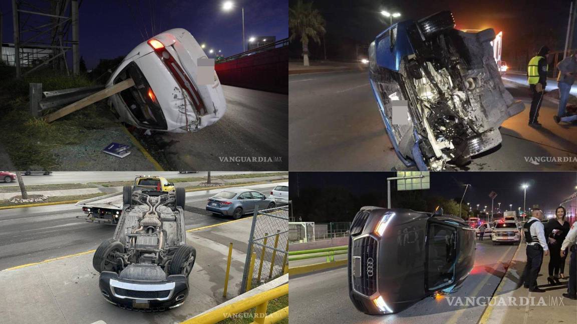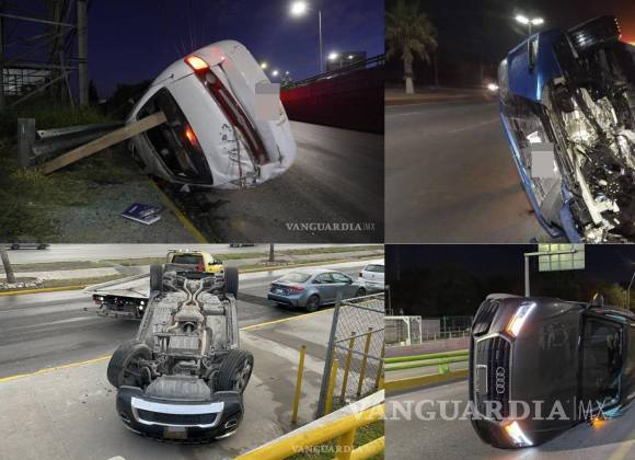 Tan solo entre sábado y domingo en la capital coahuilense se registraron tres volcaduras, de las cuales se reportaron varios lesionados y un fallecido. Además, la mañana de este lunes una camioneta se volcó en una parada de autobús ubicada en un centro comercial de bulevar Fundadores.