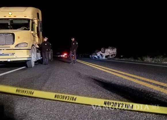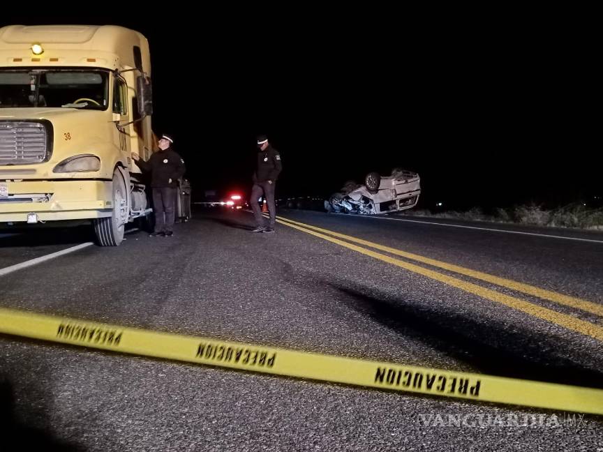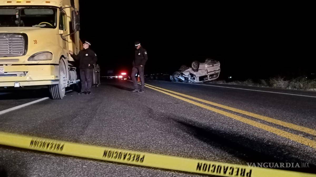 Dos personas fallecieron y otra resultó gravemente herida en un terrible accidente que ocurrió durante la madrugada de este miércoles en la carretera a Monclova. El conductor de una camioneta se impactó contra un tráiler y volcó, causando la tragedia.