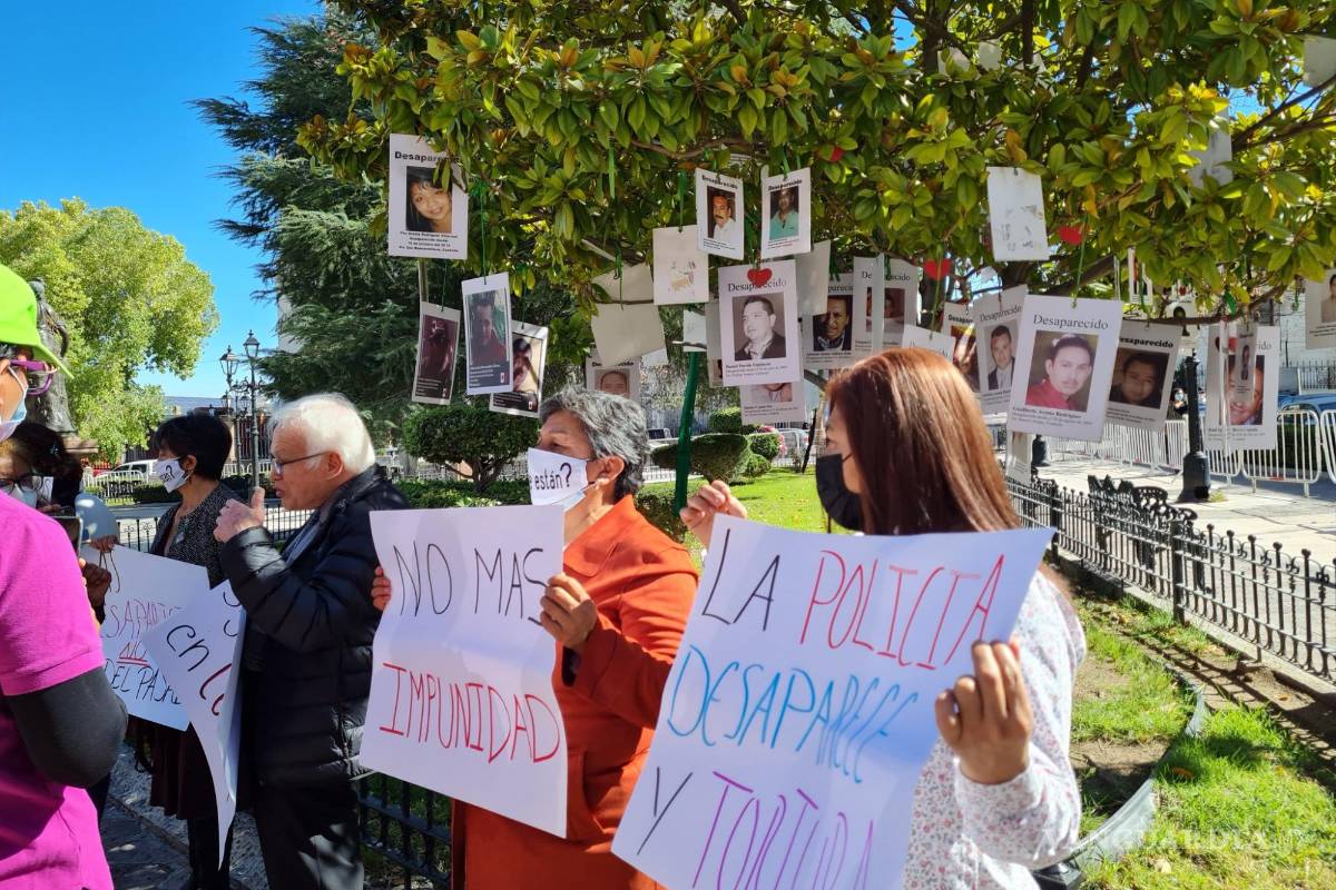 Integrantes del colectivo Fuerzas Unidas por Nuestros Desaparecidos en Coahuila (Fuundec) realizaron una marcha y manifestación por la Plaza de Armas, a la cual les permitieron la entrada, porque desde hace tiempo permanece rodeada con vallas que impiden el paso de personas.
