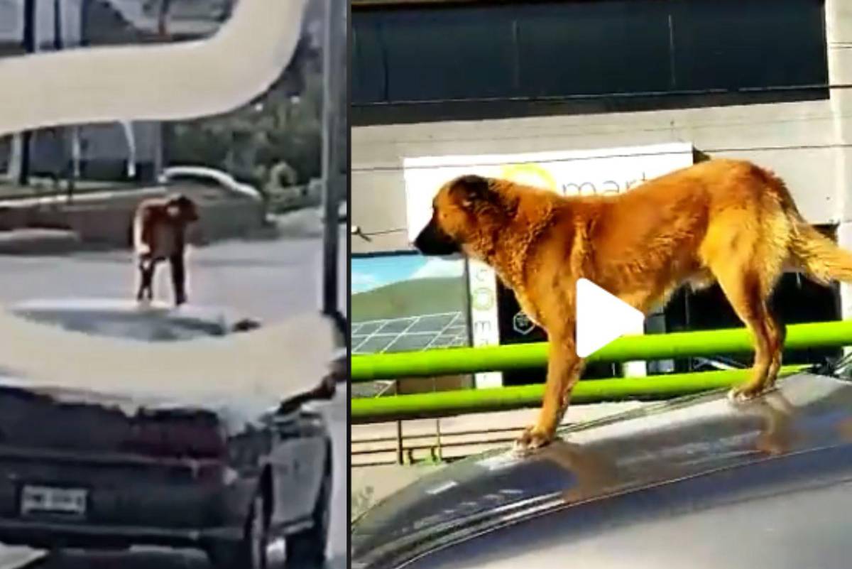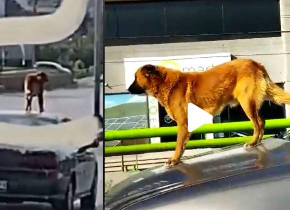Un par de videos que circulan en redes sociales, muestran los momentos en los que un perro se “pasea” por vialidades de Saltillo mientras se encuentra en el techo y cofre de un vehículo.